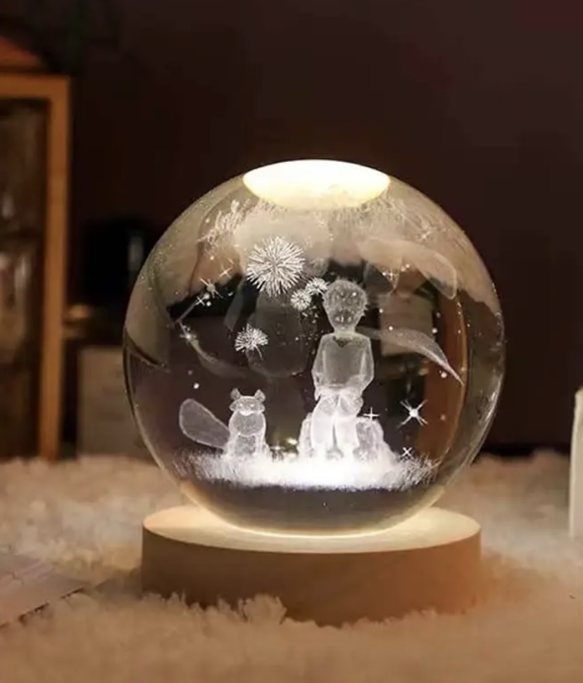 Mini lámpara en 3D de 6cm ideal para agregar un toque único y decorar tus espacios, impresión grabado a láser. Peso 350g.